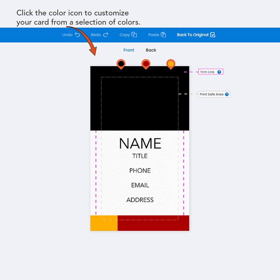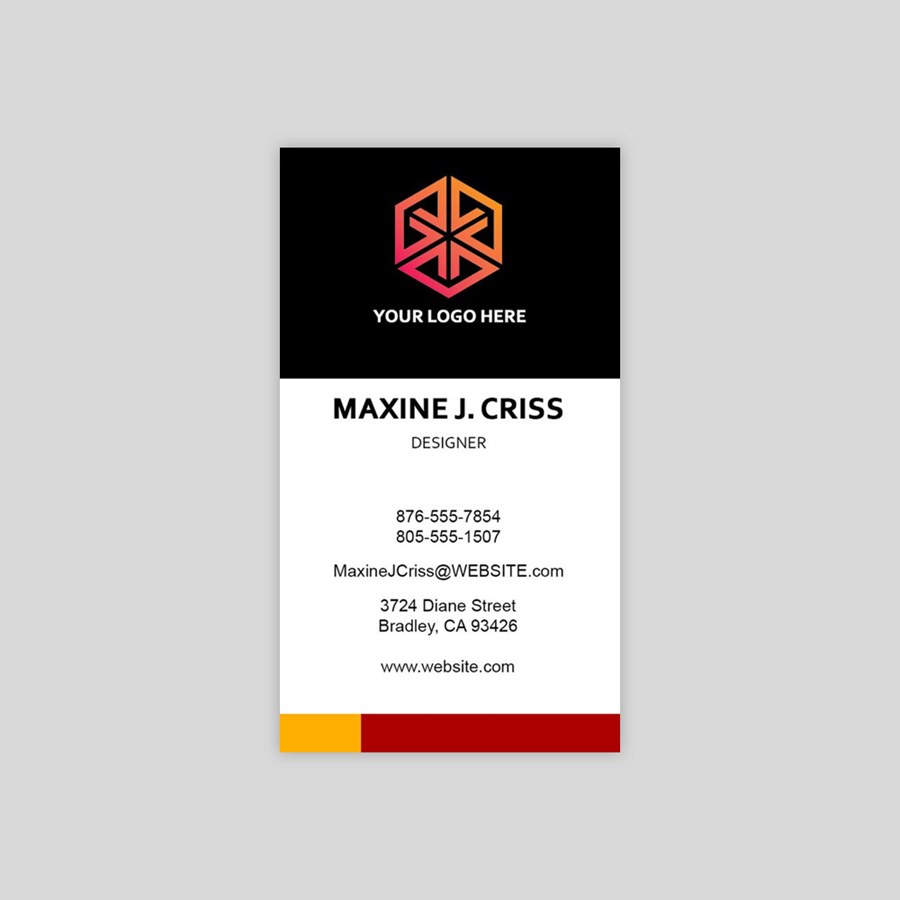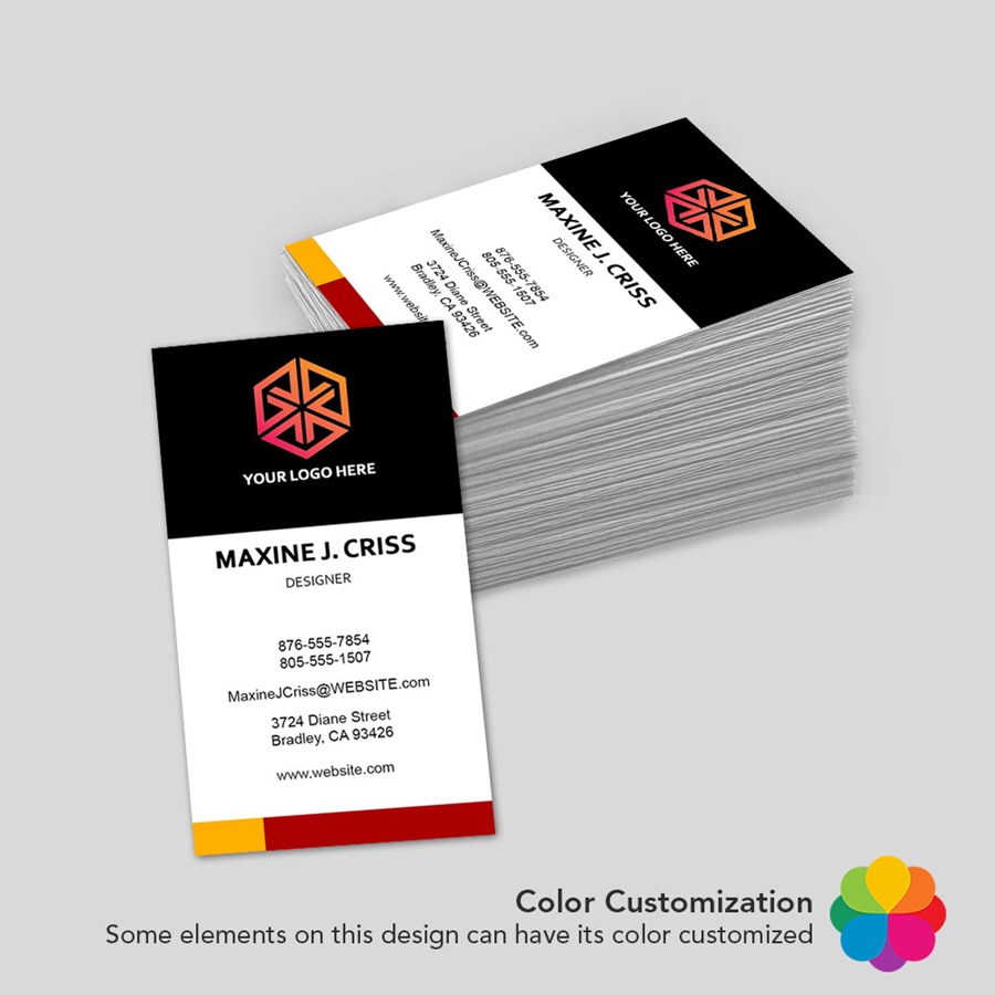 Customize this modern, vertical business card how you like! Effortlessly switch out colors, info, backgrounds, borders, and graphics. Add your logo at the top, then include your essential business information underneath. You can also add your signature and even a photograph! Choose single-sided printing or double-sided printing for more space. Select from different paper types, and choose straight or rounded corners.