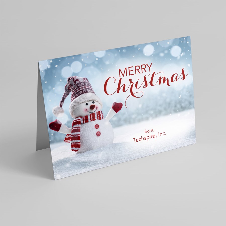Bring warm, festive cheer to your holiday outreach with the Cheerful Snowman Christmas Card. The playful snowman artwork creates an approachable, friendly greeting that puts recipients in a good mood while helping your brand stand out. Customizable to include your logo, business name, or a personal message, this printed-on-demand card supports small businesses and entrepreneurs who need quality results on a budget. Enjoy fast turnaround and cost-conscious printing so seasonal mailings and customer thank-yous won’t slow your marketing calendar. Perfect for seasonal marketing and client outreach invitations, or to add a branded touch to packaged orders. Designed for makers, local shops, freelancers, and service providers, the Cheerful Snowman Christmas Card adapts to both personal and professional needs—helping you spread holiday goodwill while keeping your brand front and center.