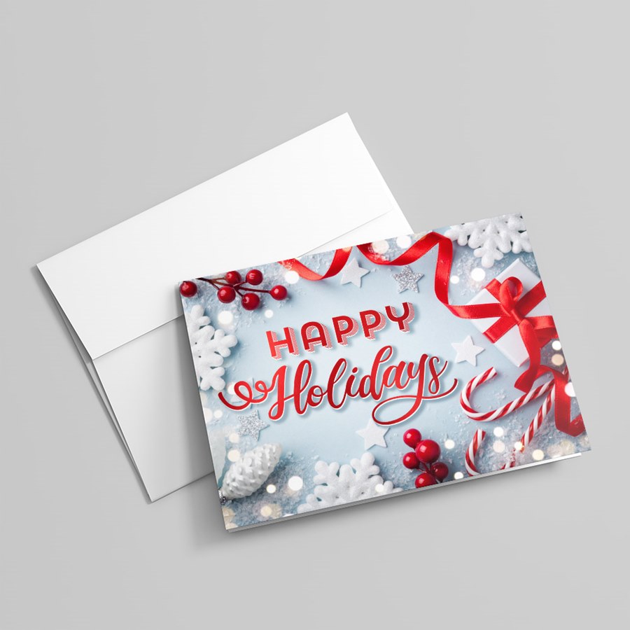 Bring seasonal warmth to your customers and contacts with the Winter's Joy holiday card — a design filled with all the memories of the holidays. Customizable, on-demand greeting designed for businesses that need impact without the wait. Enjoy an affordable way to send a polished, brand-aligned message: personalize the card with your logo, headline, and signature color palette, then rely on our fast turnaround production to get seasonal mailings and client thank-yous out the door quickly. Perfect for small businesses and entrepreneurs, Winter's Joy works for direct mail campaigns, in-store handouts, event invitations, employee greetings, and client appreciation drops. Its versatile design makes it easy to pair with promotional inserts or gift offers, helping you maintain brand consistency during the busiest time of year while keeping costs and lead times manageable.