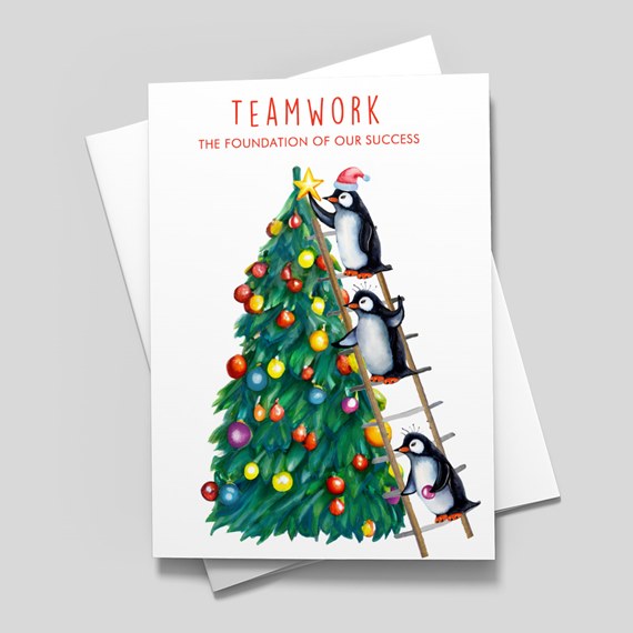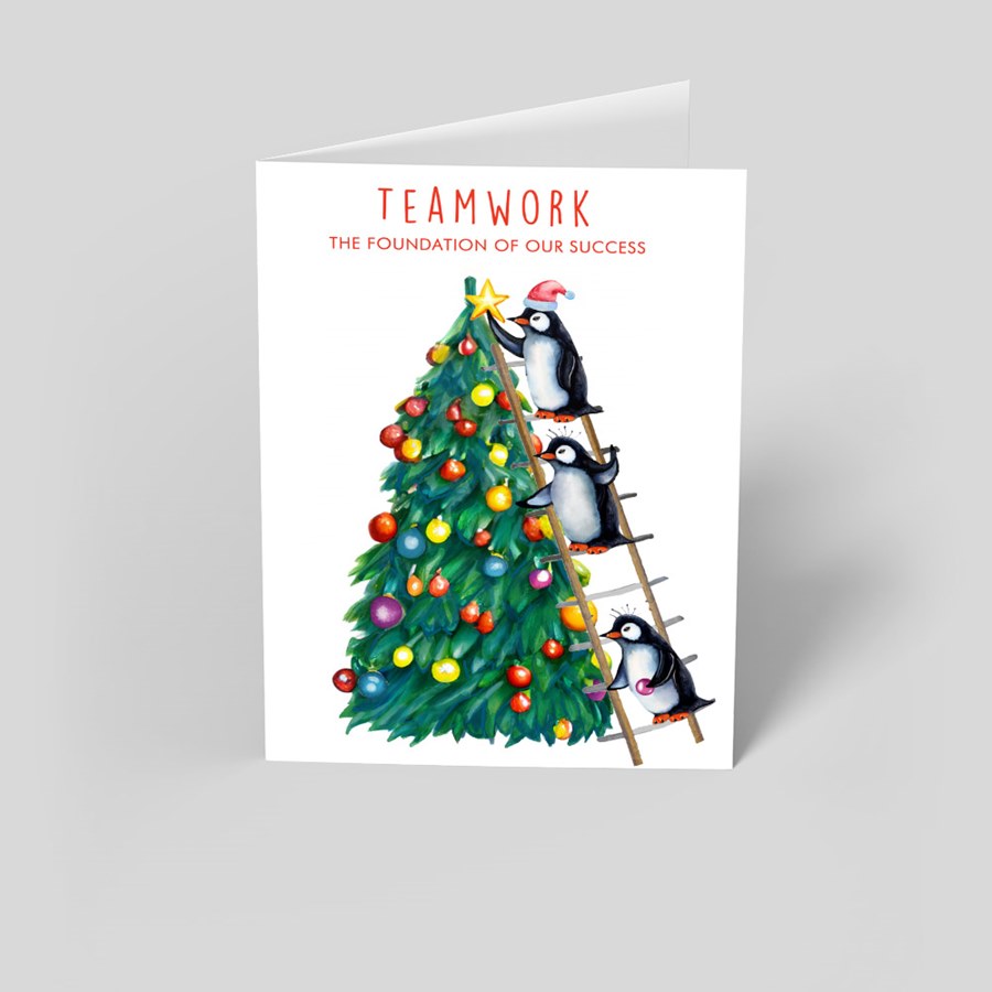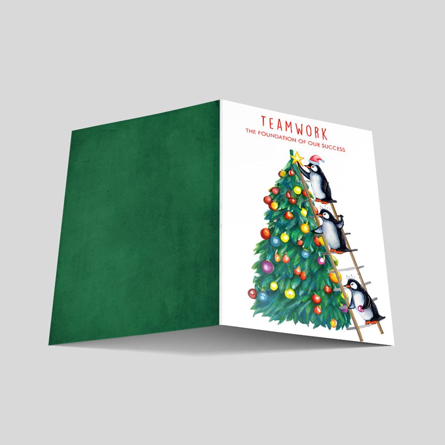 - Whimsical penguin artwork brings a warm, festive touch that works for personal greetings or branded holiday mailings.