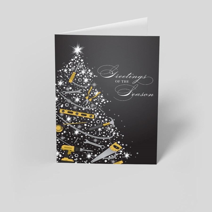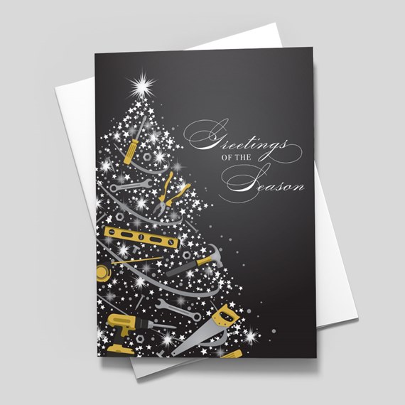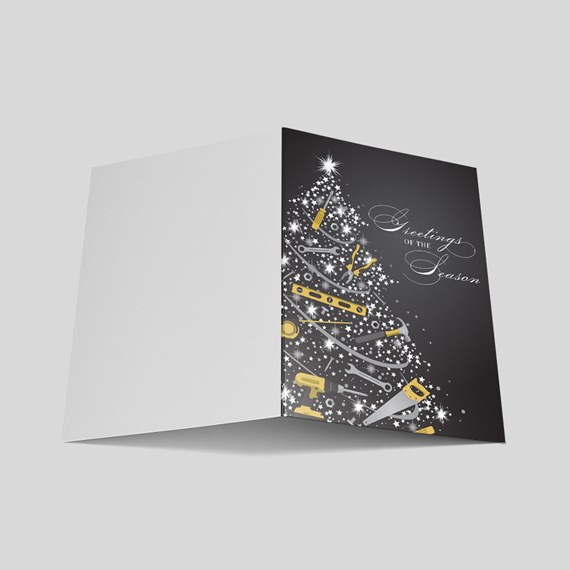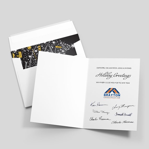 Celebrate the season with a holiday card that blends creativity and sophistication. The Constructed Tree Holiday Card features a modern geometric tree design made of sleek lines and rich green and gold tones, set against a smooth matte background. It’s a striking choice for businesses that want to send a festive message with a contemporary edge. Add your free customization, like a name or company name, message, photo, logo, signatures, and more. Choose from different sizes, paper types, and envelopes with gummed or sanitary peel-and-seal closures. Want to have your personalized cards mailed to your recipients for you? Click "Addressing + US Stamp + Mail" under the "Addressing" tab when making your selections.