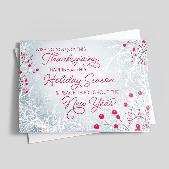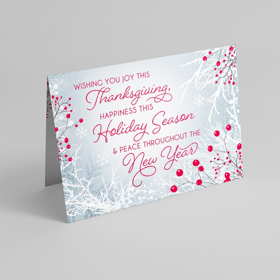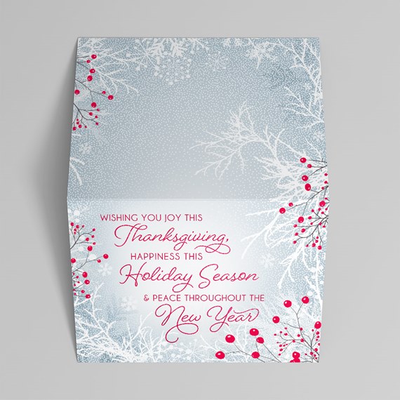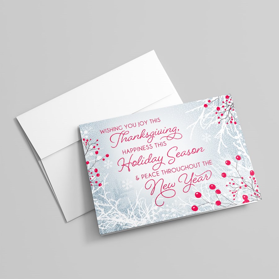 Celebrate the season with the Berry Trio Holiday Card, featuring a charming arrangement of festive berries in rich, vibrant hues. This elegant design brings a warm, natural touch to your holiday greetings. Crafted on high-quality cardstock ideal for heartfelt messages or custom personalization. Perfect for sending your warm wishes to family, friends, or colleagues, this card combines simplicity and seasonal cheer effortlessly. Add your own message inside to make it truly unique this holiday season.