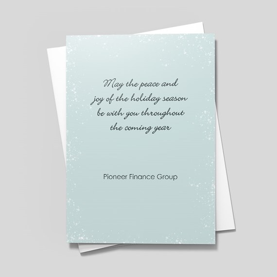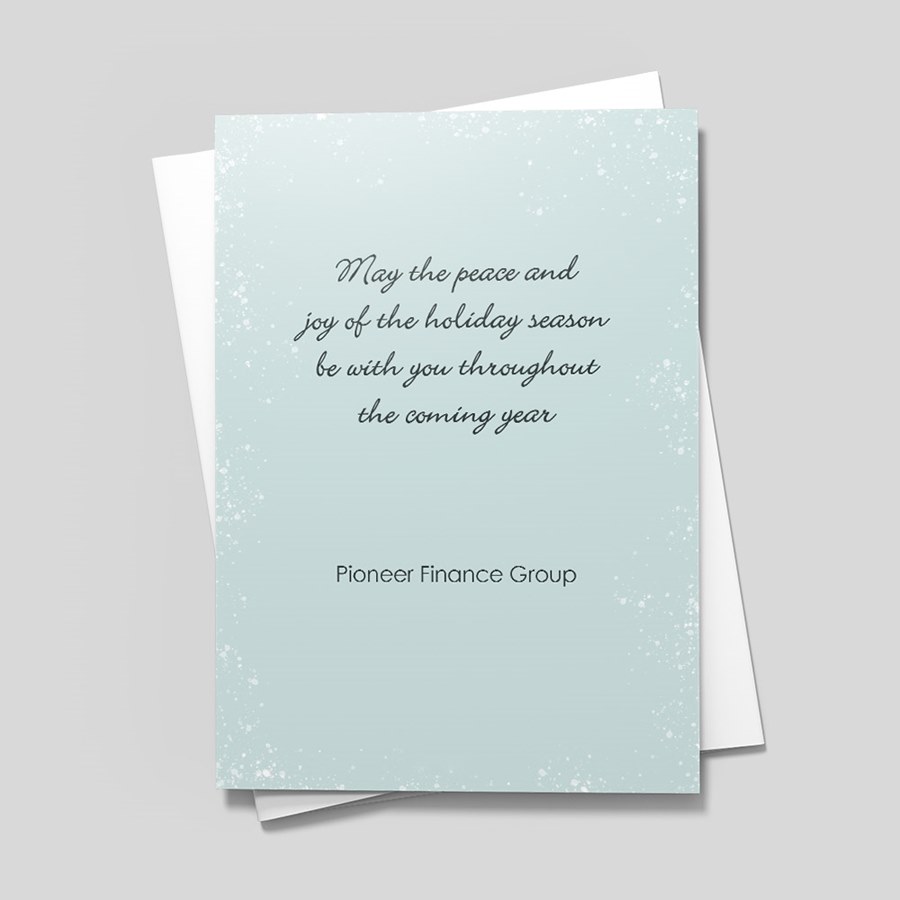 Capture the essence of winter with the Perfect Pines Holiday Card. This elegant design features a peaceful grove of snow-dusted pine trees set against a soft gradient sky, evoking a quiet moment of natural beauty during the holiday season. The minimalist aesthetic pairs well with both traditional and modern styles, making it a versatile choice for businesses and individuals alike. Add your free customization, like a name or company name, message, photo, logo, signatures, and more. Choose from different sizes, paper types, and envelopes with gummed or sanitary peel-and-seal closures. Want to have your personalized cards mailed to your recipients for you? Click "Addressing + US Stamp + Mail" under the "Addressing" tab when making your selections.