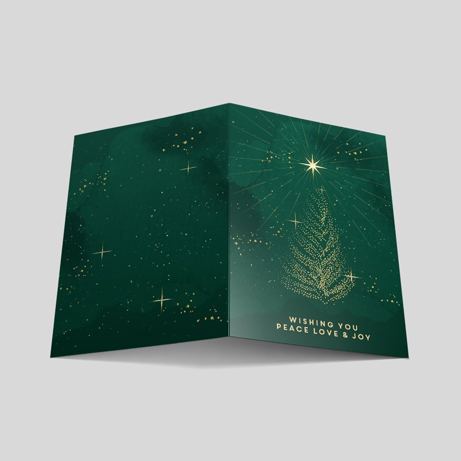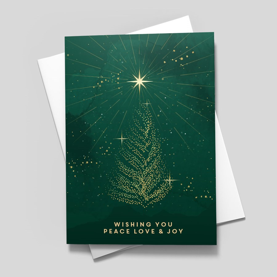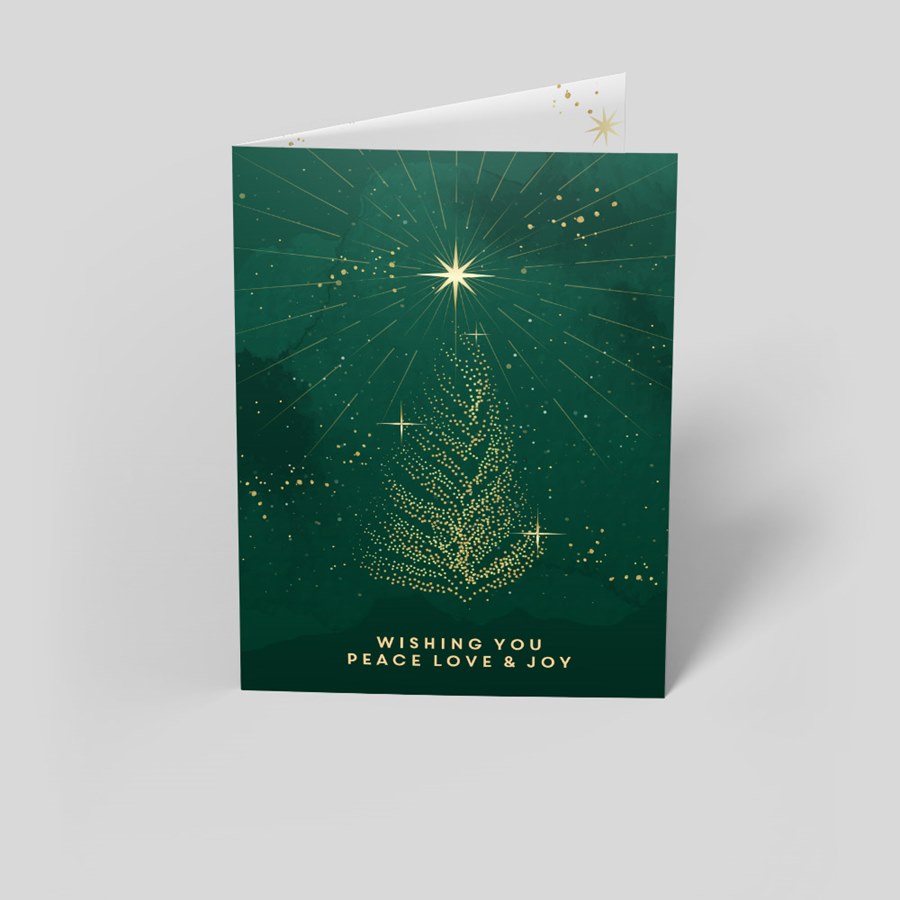 - Festive Tree of Light motif offers seasonal warmth while keeping focus on your message.