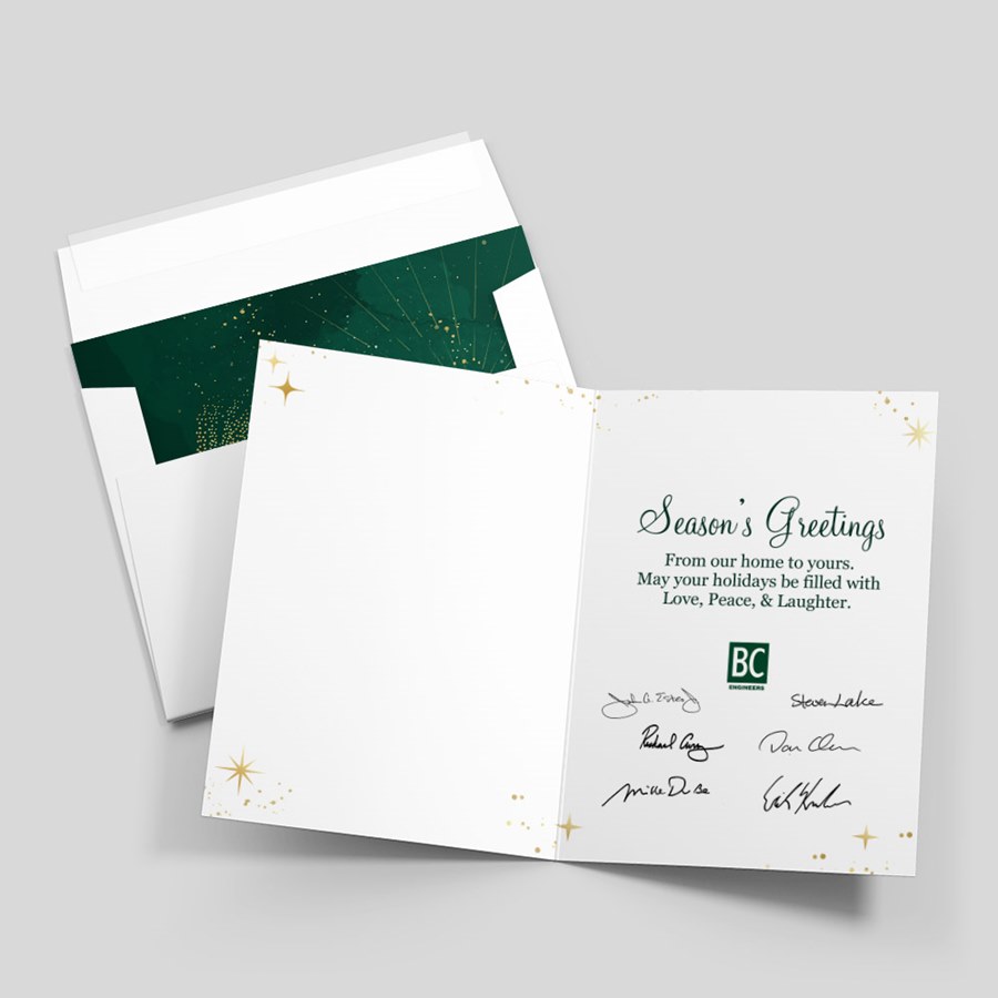 Make seasonal greetings simple, stylish, and on-brand.- Standout folded format creates a memorable, tangible greeting—great for handwritten notes or including special offers.