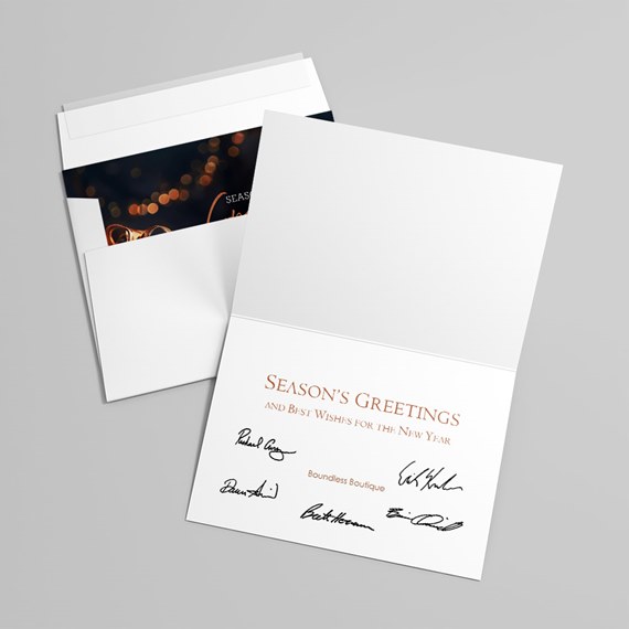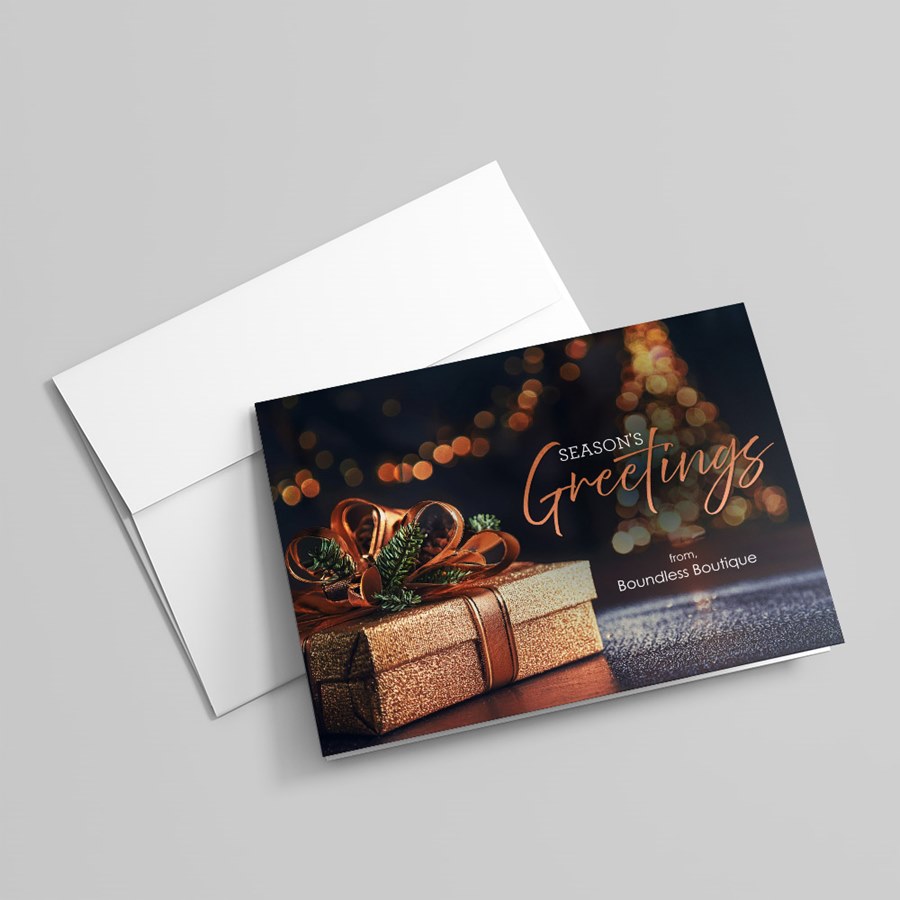 Share warm, professional season’s greetings with this timeless, fully customizable option for small businesses and entrepreneurs. Use our easy online editor to add your logo, photo, or a personalized message. Built for print-on-demand, these cards deliver consistent results with affordable pricing and fast turnaround, so you can hit holiday deadlines without excess inventory.
