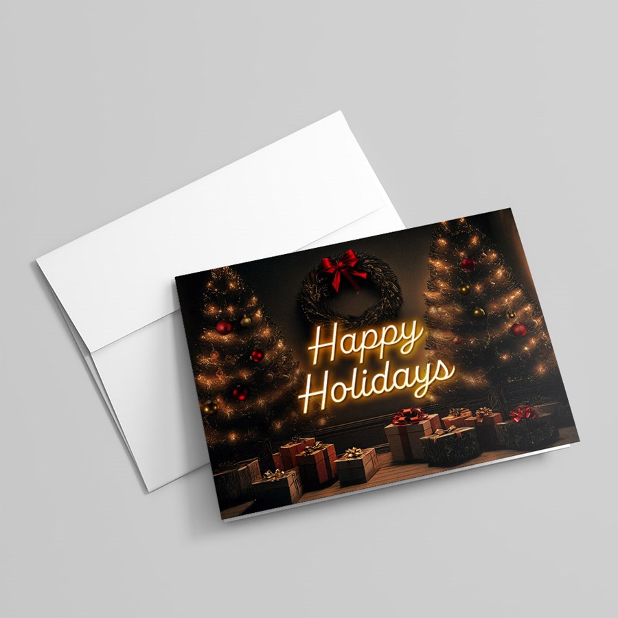 Send warm, luminous holiday wishes that stand out in every stack of mail — an elegant, professional card that works for both personal and business outreach.- Festive artwork and a clean, thoughtful layout create a warm, luminous accent that highlights your message.