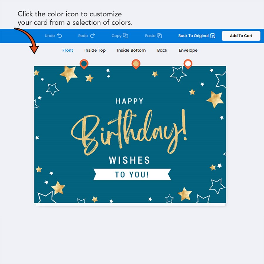Elegant and unmistakably professional, this teal card is scattered with gold and white stars and centered by a bold, cursive 'Happy Birthday!' above a crisp white ribbon that reads 'Wishes To You!'. The balanced typography and celebratory accents project appreciation with style—ideal when you want to celebrate while keeping a polished brand presence.