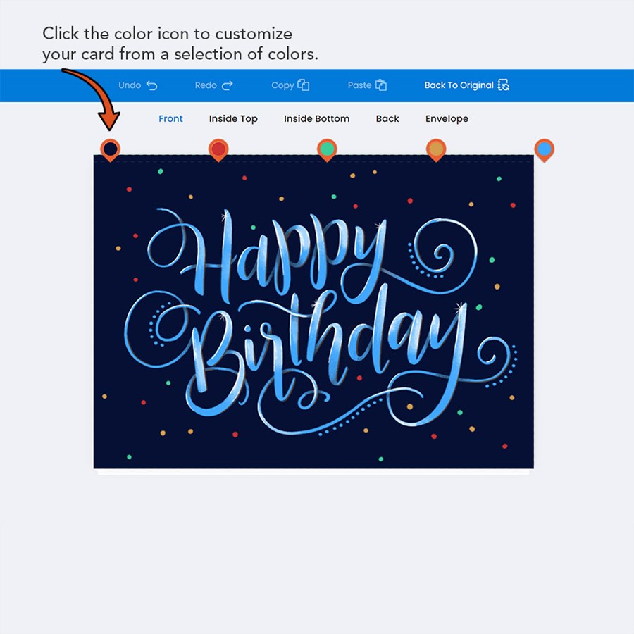 - Use our Color Select option lets you customize background and text colors to align with brand colors or party themes.