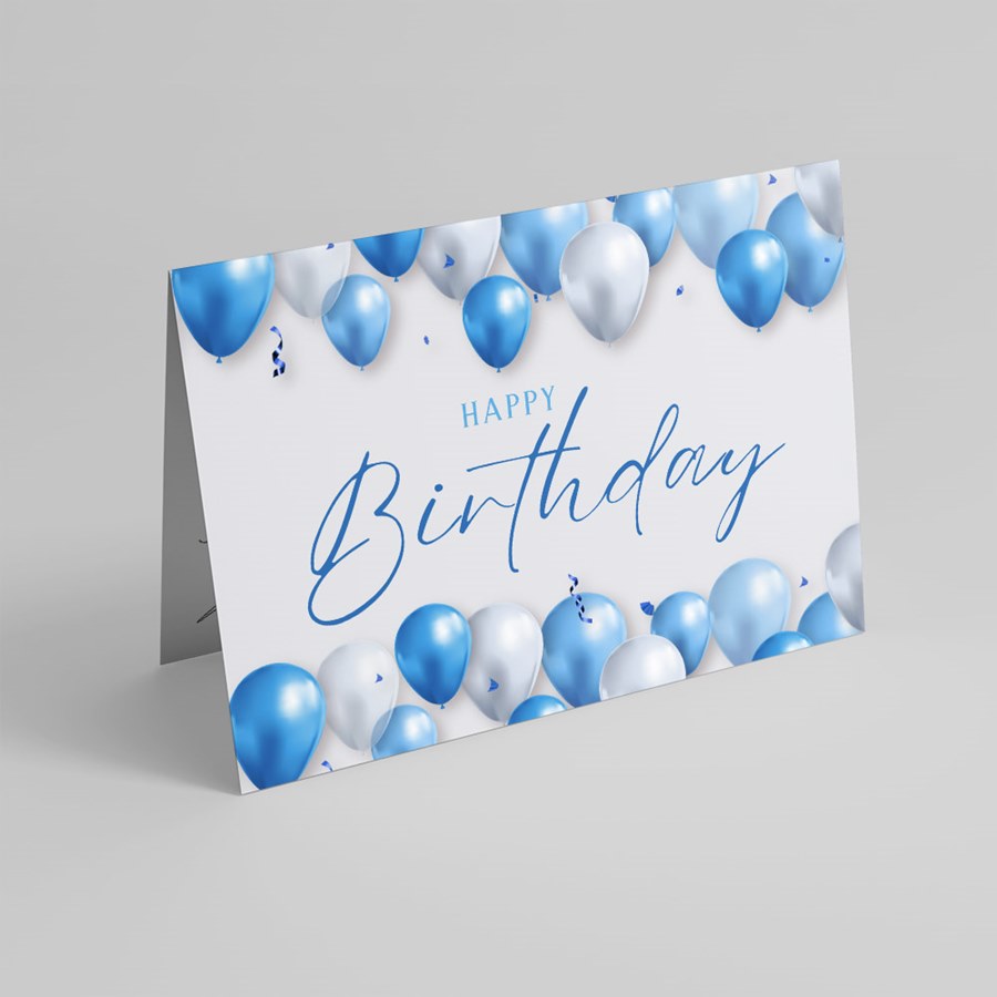 - Distinctive design: Scattered blue and silver balloons frame the card while the prominent HAPPY Birthday text maintains elegant readability.