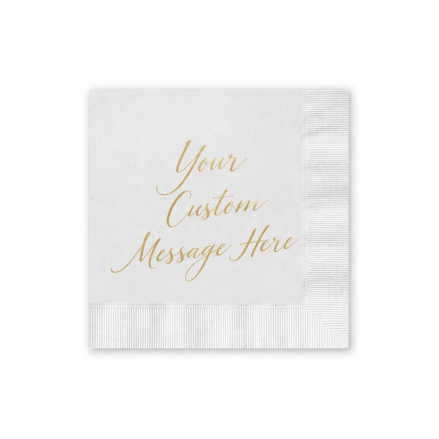 Our custom luncheon size 6-1/2" x 6-1/2" foil printed napkins will definitely upscale your next business event. Made of sturdy 3 ply white coined edge napkin stock printed with your choice of Gold, Silver, Rose Gold or Shiny Black foil.