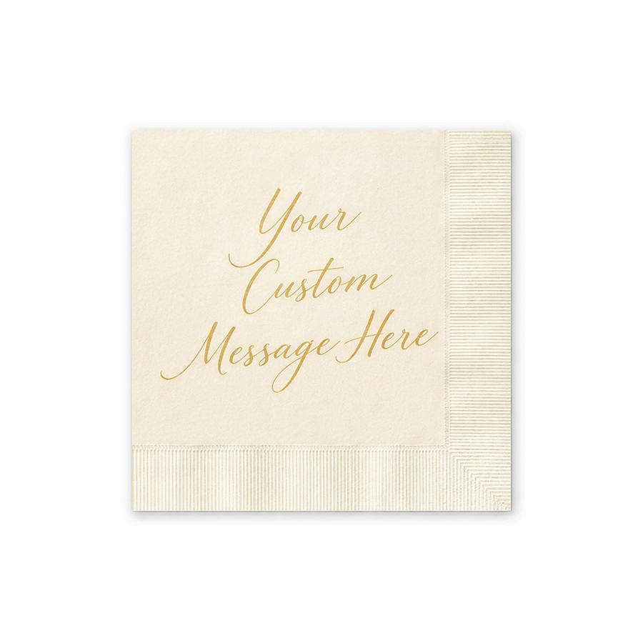 Our custom luncheon size 6-1/2" x 6-1/2" foil printed napkins will definitely upscale your next business event. They are made of sturdy 3 ply ecru coined edge napkin stock and printed with your choice of Gold, Silver, Rose Gold or Shiny Black foil.